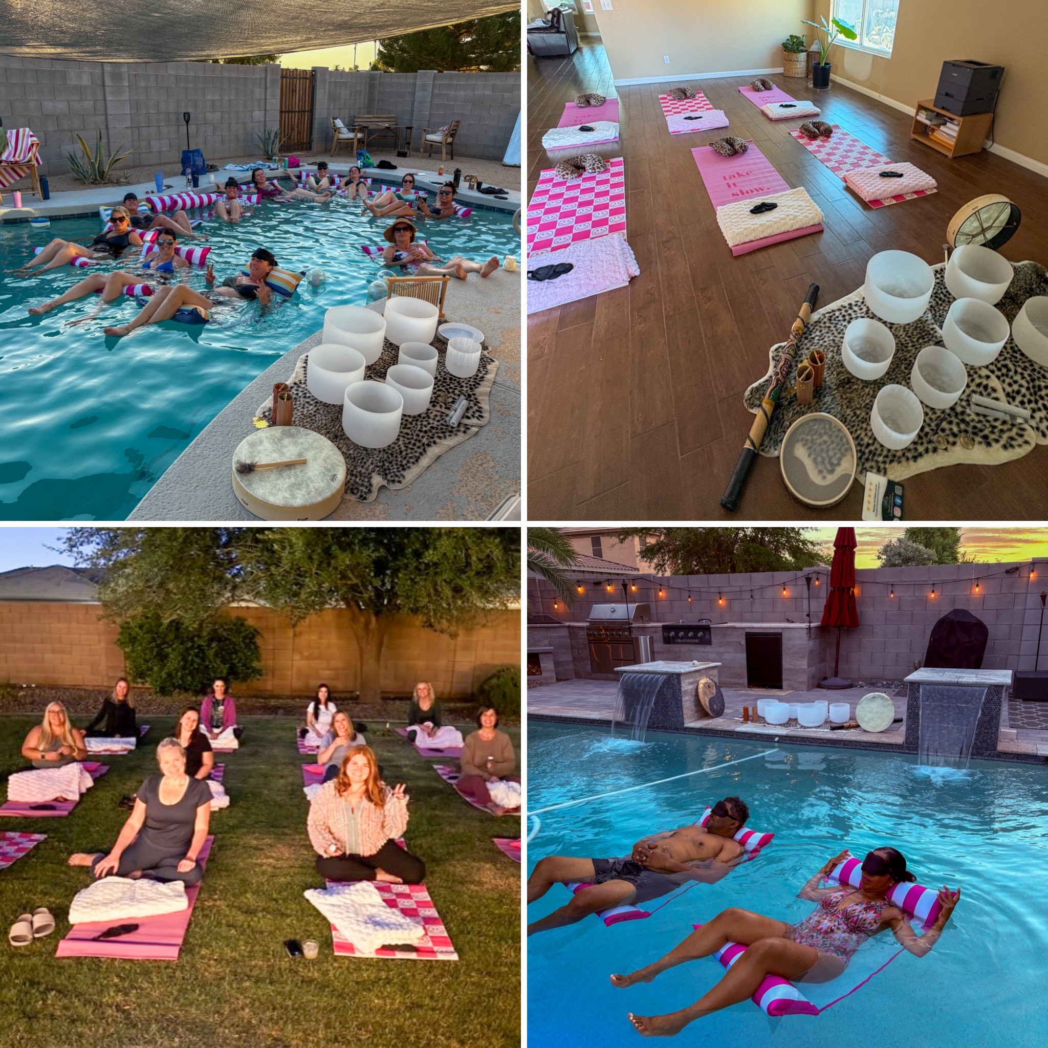 Pool float sound baths take this experience to another level especially here in Arizona. Floating on water while sound vibrations move through the space creates a feeling of weightlessness that’s incredibly soothing.
